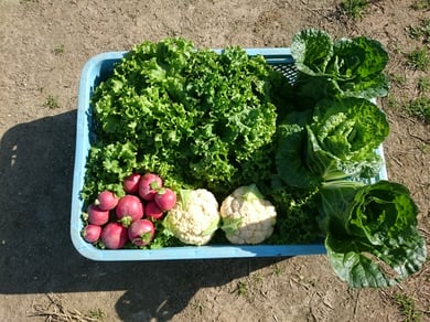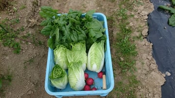 今週は収穫祭りでした! リーフレタス、カリフラワー、二十日大根、ミニハクサイ、キャベツ、ニンジン、ホウレンソウ、チンゲンサイ、ジャガイモと種類豊富で、おいしい野菜が収穫できました。