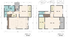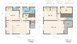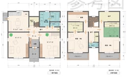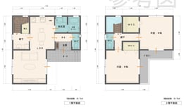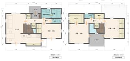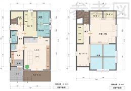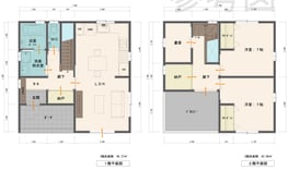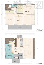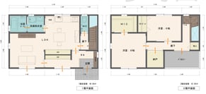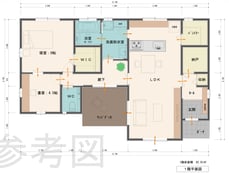 床面積100㎡以下のコンパクトな住宅。1階に洋室があるプラン。キッチンはクローズです。