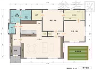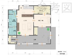 床面積100㎡以下のコンパクトな住宅。玄関からリビングやダイニングへ直接行けるプラン。